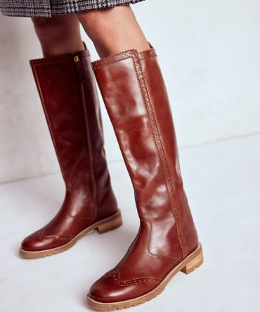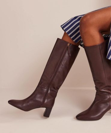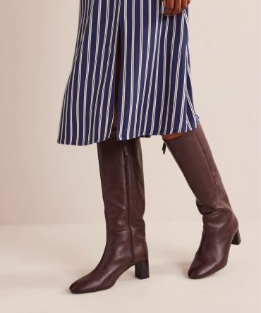 Erica Knee High Leather Boots-Chocolate Leather | Boden UK