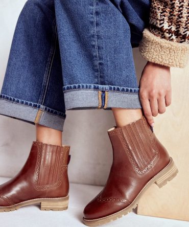 Brogue Detail Chelsea Boots-Tan | Boden UK