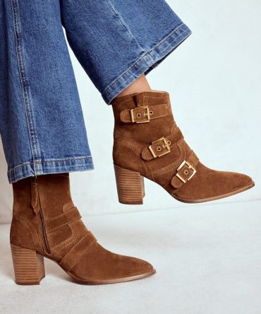 Heeled Buckled Ankle Boot-Cognac | Boden UK